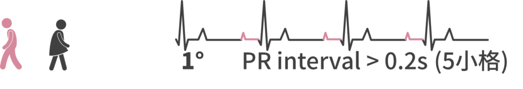 • 一度特徵:PR>0.2 秒(5 小格)