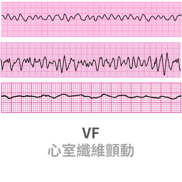 • VF 變得很微弱時,會滿像 asystole。如果難以判斷,就當作 VF 處置