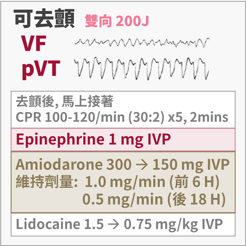 • 無脈搏:PEA 流程(這時不叫 Af,而是 PEA)